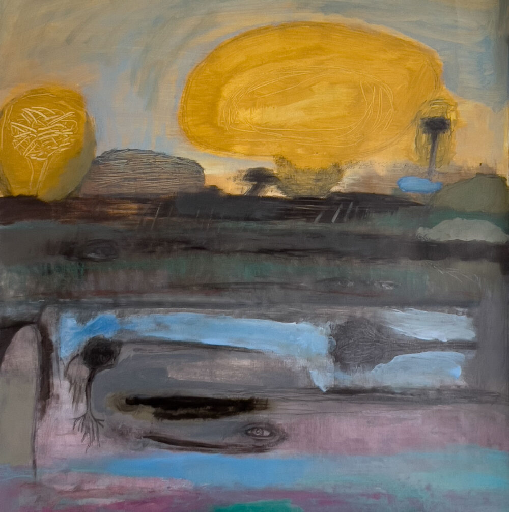45 x 45 cm. Acrylic on canvas. I “Morning Land” møder du et landskab i transformation. Værket er både en fysisk og emotionel rejse, hvor lag på lag af farve skaber dybde og mystik. De transparente lag tillader tidligere stadier at skinne igennem, hvilket skaber en fornemmelse af tid og erindring i konstant bevægelse. Maleriet er en del af mine udforskning af overgangsfaser – både i naturen og i menneskelivet. Det tager udgangspunkt i personlige erindringer, men åbner sig mod universelle temaer om fornyelse og håb.